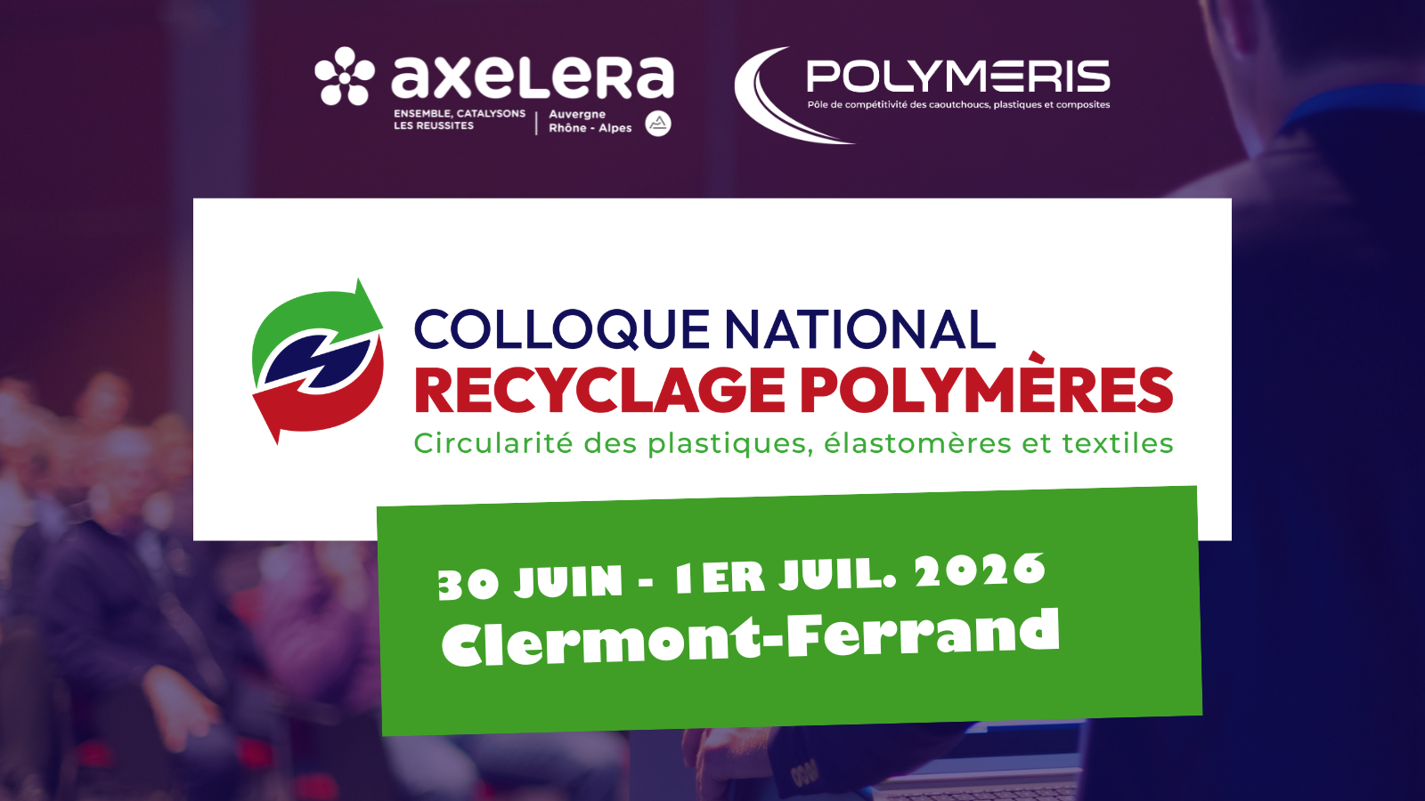 Nous vous invitons à noter dès maintenant la date du Colloque National sur le Recyclage des Polymères, un rendez-vous majeur pour notre filière. Les dernières places restent disponibles pour exposer à nos côtés aux salons JEC World et FIP. Vous trouverez également dans cette édition l’actualité de nos projets et de nos adhérents. Enfin, nous revenons sur la 7ᵉ édition du S3, qui a rassemblé plus de 80 participants autour des solutions pour les matériaux de demain. Bonne lecture ! L’équipe POLYMERIS You can find all the news in English on our website | | [J-14] Journée Scientifique "Usine Numérique" Le mardi 9 décembre 2025 à Besançon Evénement gratuit pour les adhérents Polymeris ! | | | | | | | | | | | Colloque National du Recyclage des Polymères SAVE THE DATE - AMI - SPONSORING | | Les pôles de compétitivité AXELERA et POLYMERIS en collaboration avec les pôles de compétitivité TECHTERA, TEAM2, les Comités Stratégiques des Filières Transformation et valorisation des déchets, et Chimie et matériaux, le PEPR recyclage, et les organisations professionnelles elanova et Polyvia, vous donnent rendez-vous pour le 3ème Colloque National Recyclage Polymères. 📅 Dates : 30 juin et 1er juillet 2026 📍 Lieu : Clermont-Ferrand | | APPEL À COMMUNICATIONS – Partagez vos projets ! | | Vous souhaitez intervenir lors de ce colloque ? Nous lançons un appel à communications ouvert à tous les acteurs de la filière. 📌 Date limite d’envoi : 16 janvier 2026. Merci de nous adresser le formulaire complété avant cette date. | | DEVENEZ PARTENAIRE – Dossier de sponsoring disponible | | | | | |